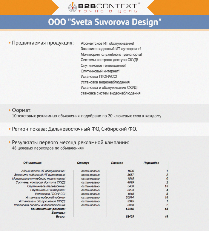 Вы получите не только комплексное обслуживание по различным направлениям рекламной деятельности, но и постоянную помощь, поддержку, консультации, аналитику.